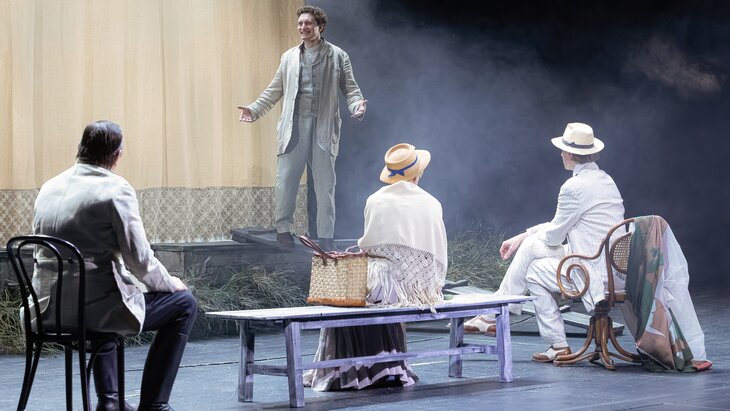 Спектакль представляет собой современную интерпретацию классического произведения Антона Чехова. В ролях — Юлия Высоцкая, Арсений Васильевых, Денис Зайнуллин, Виктор Гордеев, Владимир Горюшин и другие актеры. Следующий показ назначен на 24 апреля, билеты доступны в сервисе "Мосбилет".